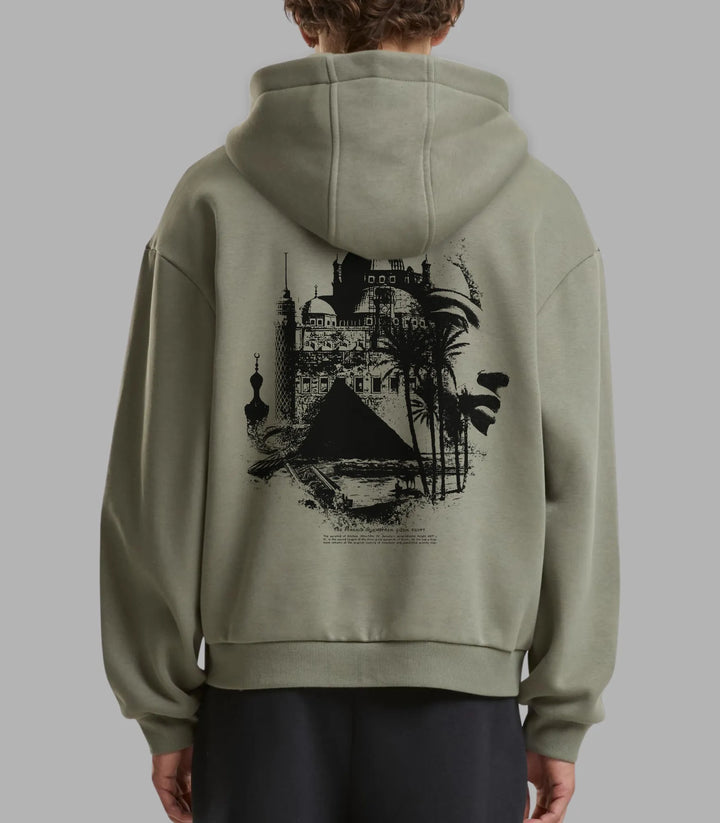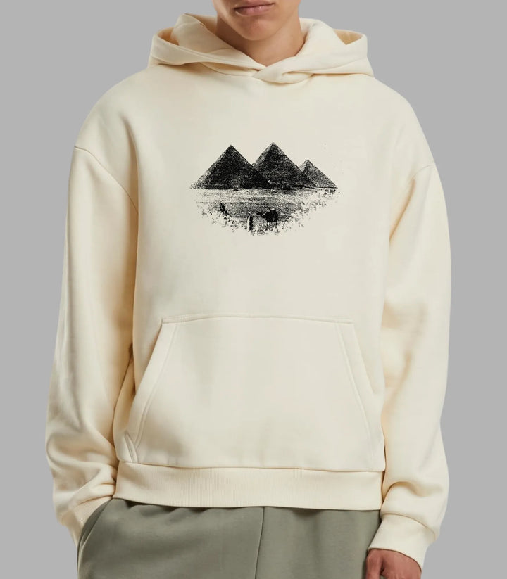 - The Egypt Iconic Hoodie is crafted from soft, high-quality cotton, featuring a design that combines elegance and comfort, reflecting the authentic Arabian vibes. Available in white, it suits all occasions and ensures comfort and warmth throughout the day.